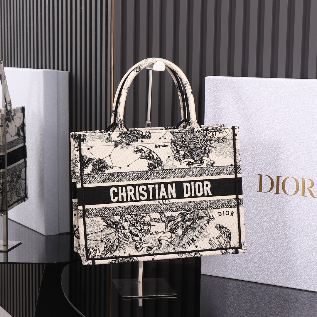 medium D*or book tote de jouy zodiac 14 x 11 x 6.5 inches