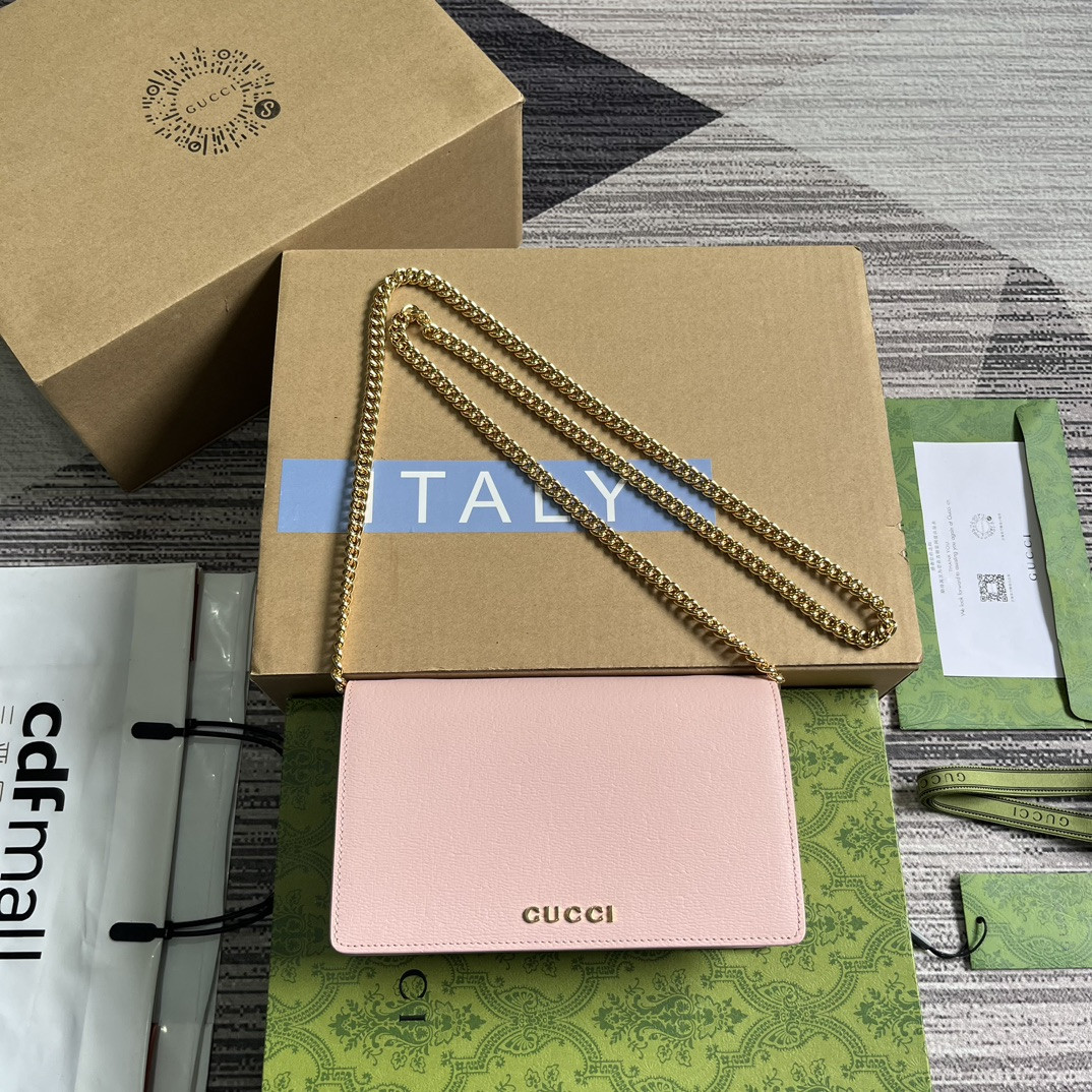 chain wallet with G*u*i script pink 7.8"w x 5"h x 1.6"d